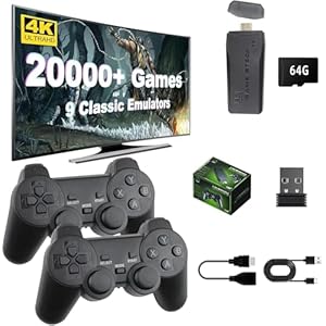 Video GamesWireless Retro Game Console Stick 4K with Built-in 8+ Emulators, 20,000+ Games, Hdmi Output & 2.4GHz 2 Remote Gaming Controllers(64G Black)